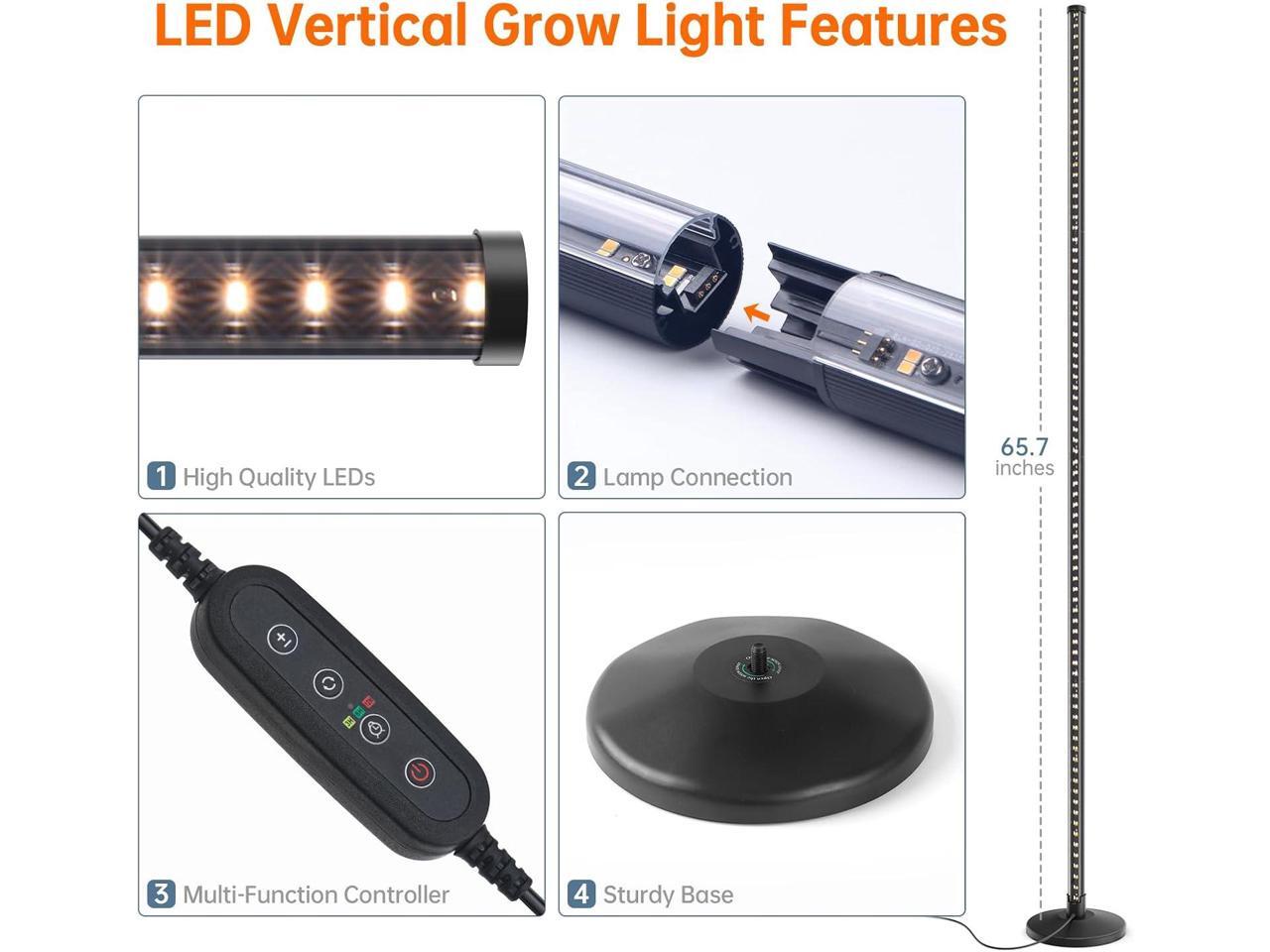 - Heightened Design & Height AdjustmentUnique heightened Design. Compared to 47-inch vertical plant lights, our vertical grow light is up to 65.7 inches, which can illuminate taller indoor plants. Special 4 sections splicing design. allowing for height adjustment within the range of 16.8 to 65.7 inches, thereby catering to the needs of indoor plants at various heights and providing them with more precise growth lighting