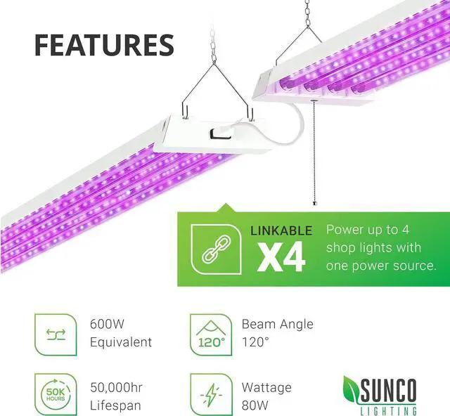 SIMPLE INSTALL - Follow our installation guide for the fast and easy setup in your indoor farming space. Mounting hardware is included (5' Plug-in Cord | 24 Pull Chain Switch). Directly mount or suspend from ceiling. You can link up to 4 fixtures in a greenhouse or indoor hydroponic grow setup.