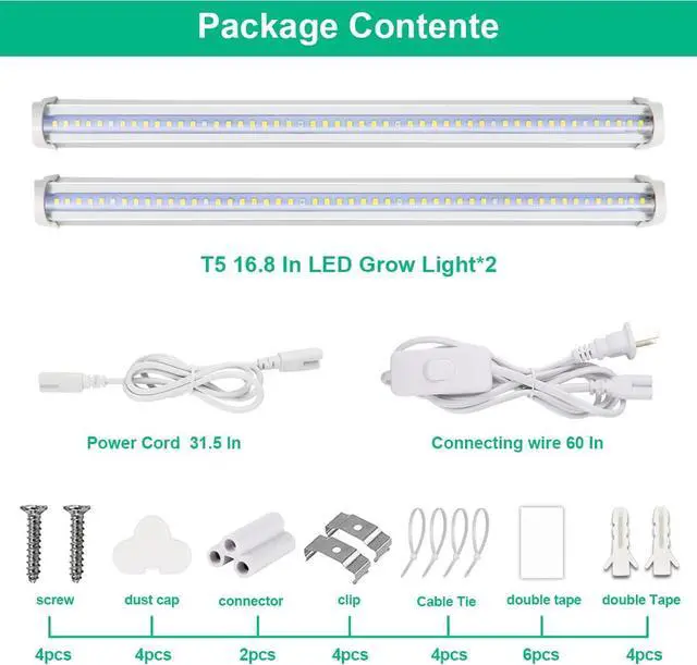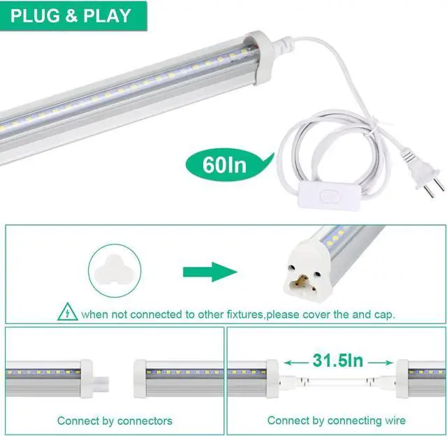 Easy Install: Light kit including double-sided tape, clips and cable ties, you could install the lights by yourself in minutes. Could connect up to 8 tube lights together, The hanging growing lights have ON/OFF switch, Plug and Play, saving your installation cost and time.