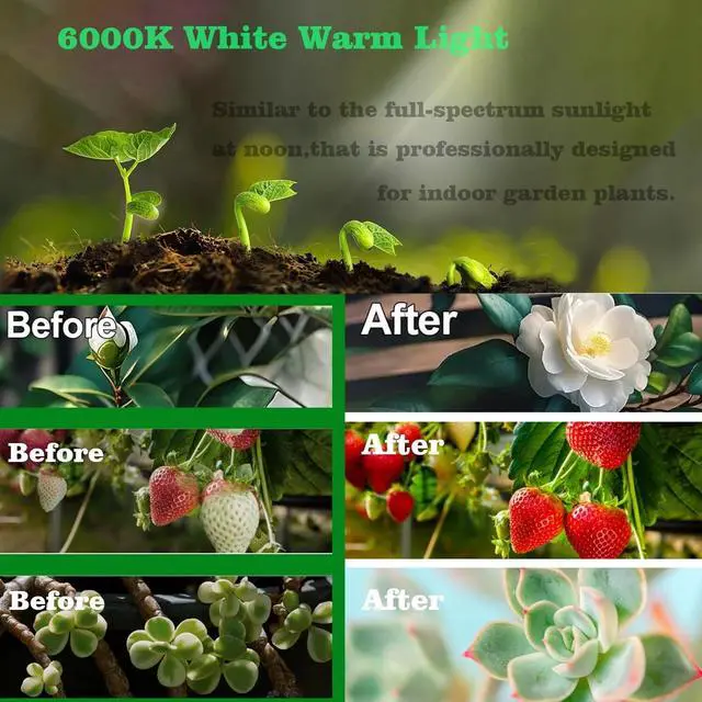 3 Lighting and 10 Brightness ModesThis grow lamp for indoor plants can switch between white/warm mode, the 10 levels of brightness adjustment can meet the lighting requirements of different types of plants at different stages; Nice for multiple plants family