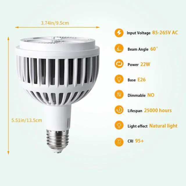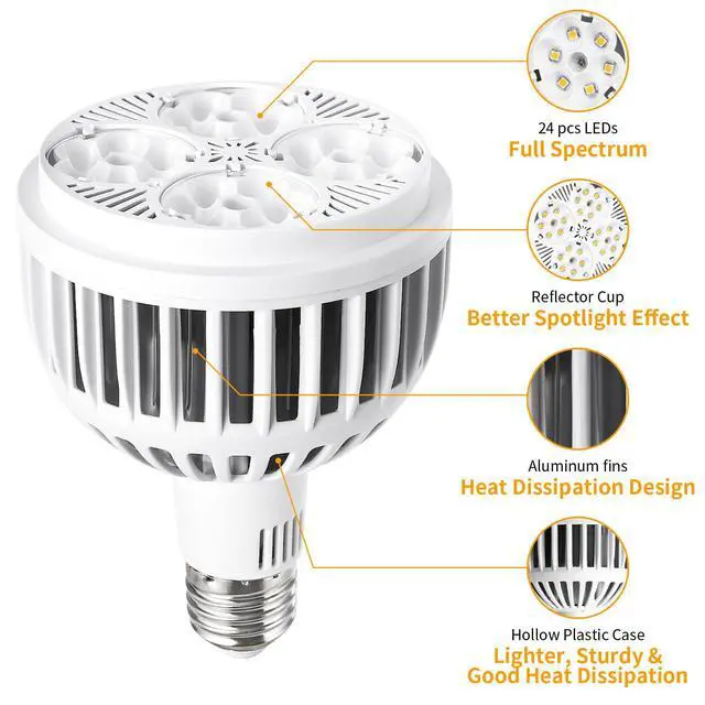 Superior Heat DissipationAll die-cast aluminum shell and built-in aluminum fins accelerate heat dissipation, keeping the lamp cool during long-time use. Extends lifespan to over 30,000 hours.