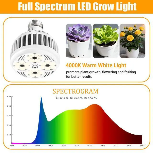 22W LED Grow Light, E26 Socket, Full Spectrum 4000K, High CRI 95, White Shell, Efficient Heat Dissipation, Energy - Saving for Home Gardening (2 Pack)