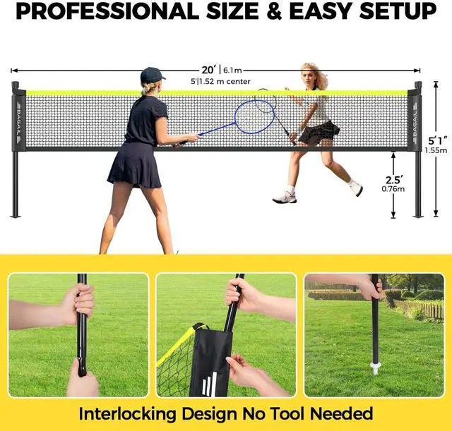 BAGAIL Outdoor Badminton Net Set with Anti-Sag Winch System - Official Size 20ft x 5ft, 4 Rackets, 3 Shuttlecocks, Durable PE Net & Carry Bag for Backyard, Beach, Family Games - Yellow