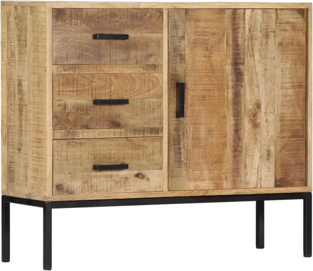 This sideboard oozes an elegant charm that will add an eye-catching piece to your home decor. The cabinet is made of solid mango wood, a hardwood with dense grains. Rough mango wood not only has the strength to bear the weight, but also stands the wear and tear of time. As a consequence, this beautifully-designed dressoir is exceedingly stable, durable, aesthetically-appealing. Additionally, this wooden cabinet is fully handmade and the graceful wood grains make every piece of furniture distinctive and slightly different from each other. This dressoir features 3 drawers and 1 cabinet with door, providing ample space for storing your clothing, books, as well as various other items.