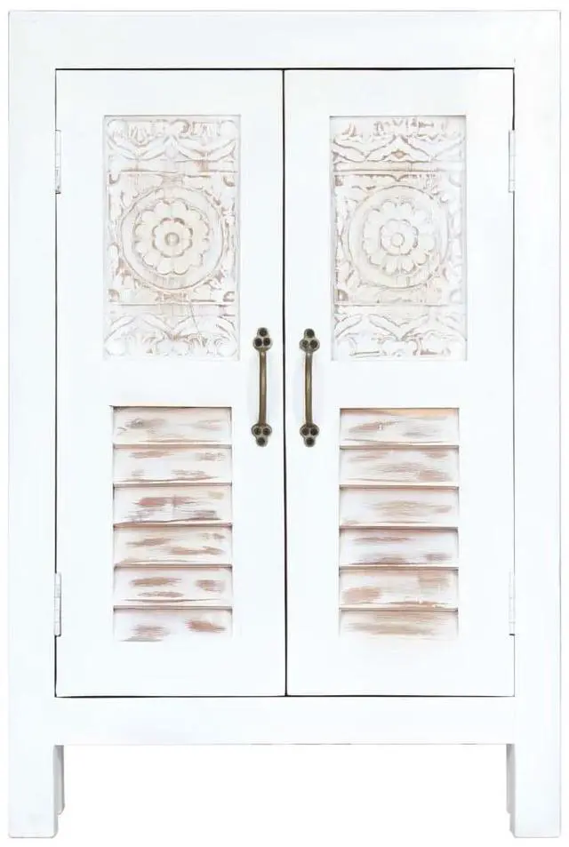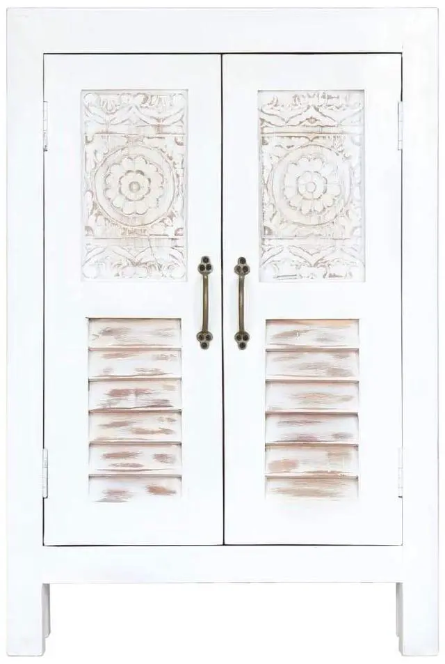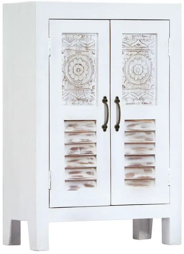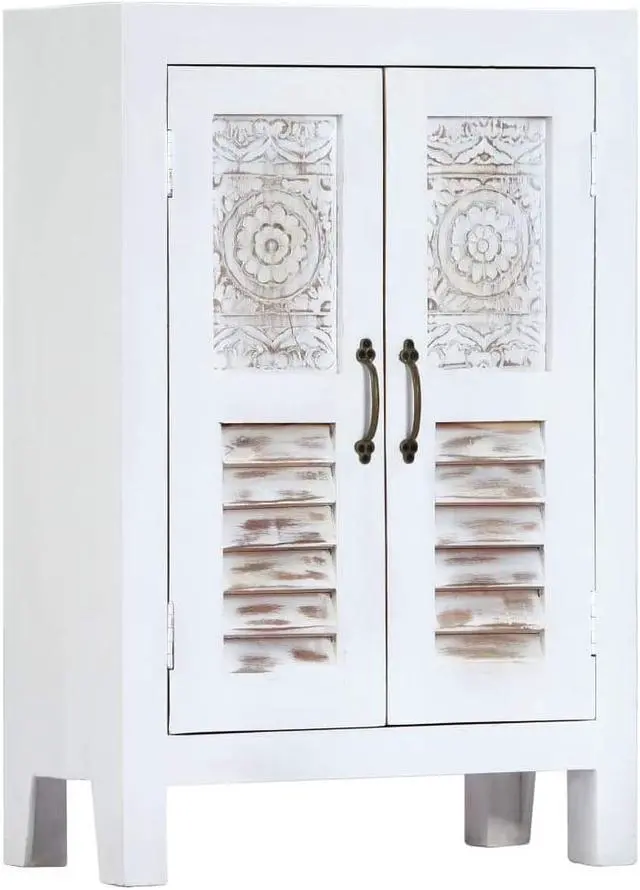 The cabinet is made of solid mango wood, a hardwood with dense grains. Rough mango wood not only has the strength to bear the weight, but also stands the wear and tear of time. Accordingly, this beautifully-designed dresser is exceedingly stable, durable and aesthetically-appealing. The exquisite craftsmanship and the beautiful wood grains make every piece of furniture distinctive and slightly different from each other. Additionally, this dresser features 2 compartments with 2 doors, providing ample space for storing your shoes, books, as well as various other items.