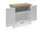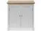 It has a solid oak top, which adds to its sturdiness and durability. The oak has beautiful wood grains that exude a natural charm. The frame is made of solid pinewood with a white finish and boasts a contemporary style. This spacious sideboard has a large compartment with a shelf and two doors and provides ample storage space.