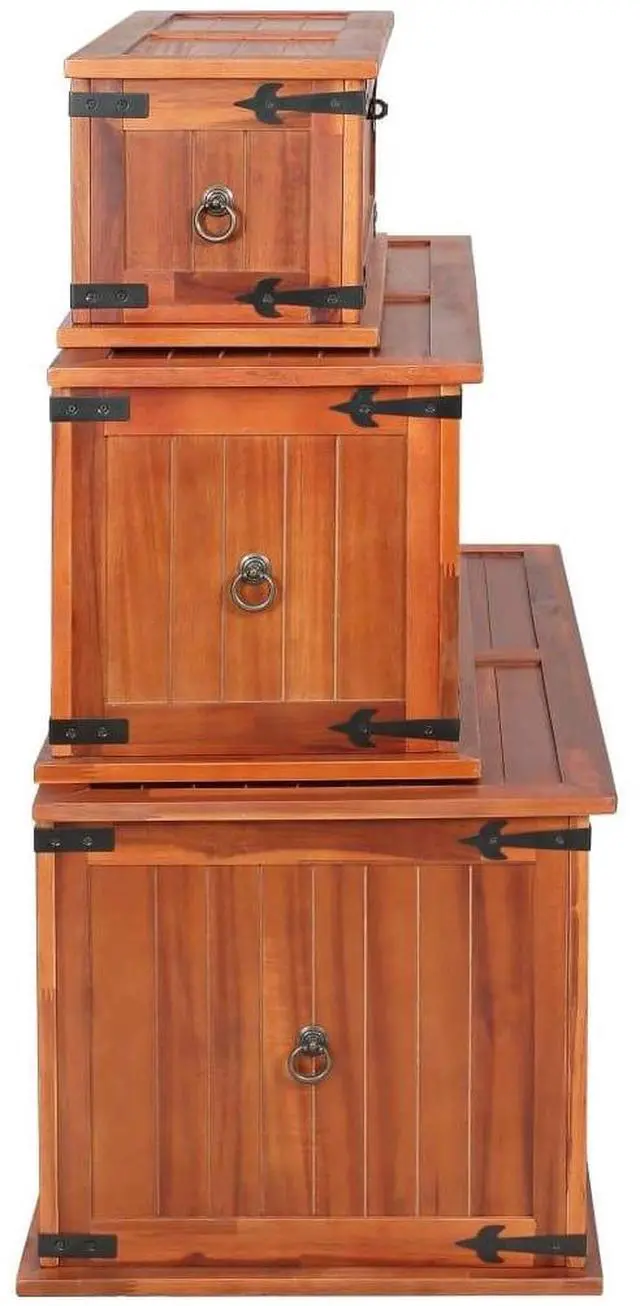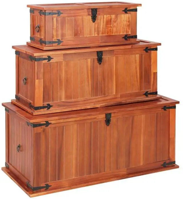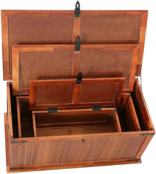 The storage box provides ample storage space for clothes, magazines, books, toys, tools and other accessories. It has a latch on the front and two handles on both sides. Thanks to the stable flat top, this wooden box can also be used as a coffee table, couch table, living room table, side table, end table, etc. The storage chest is handmade of solid acacia wood. The fine craftsmanship and the beautiful wood grains make every piece of furniture unique and slightly different from the next.