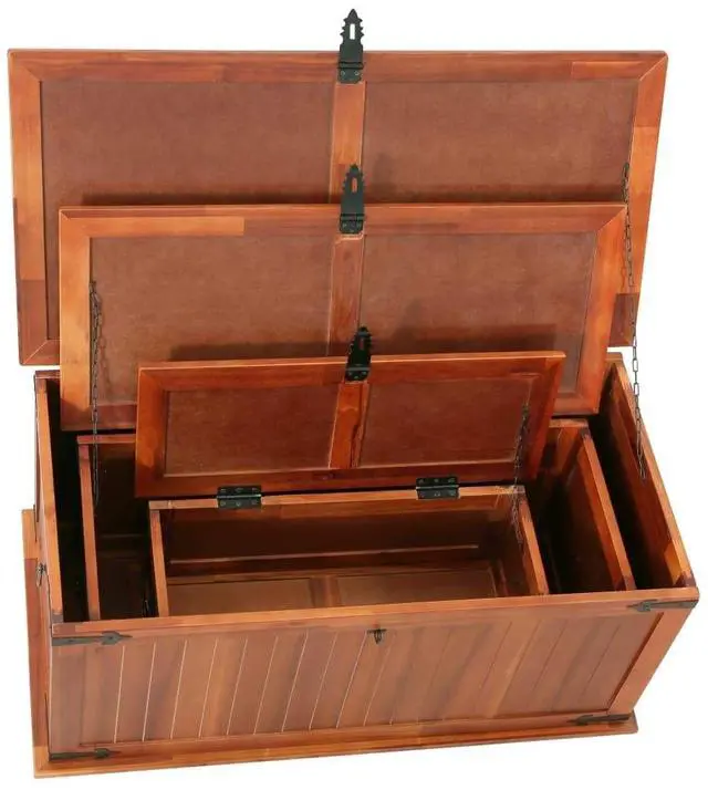 This unique storage chest, made of solid acacia wood and MDF, will make a great addition to your room.