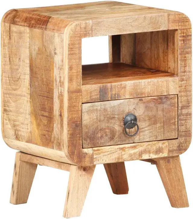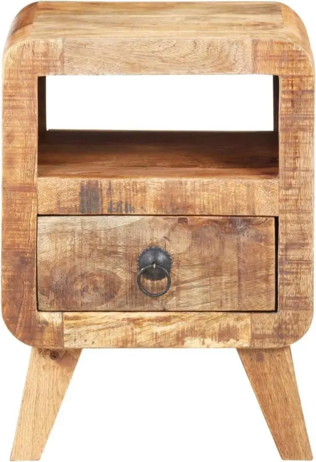 This bed cabinet is made of rough mango wood, a hardwood that has enough strength to bear the weight. It will also stand wear and tear of the time. The wood has beautiful dense grains, and every piece of furniture is unique and different from the next. The sturdy top is ideal for placing a night lamp, telephone, alarm clock, and other small items, or just displaying photo frames or other decorative items. The drawer also provides ample place to keep items organized and within reach.