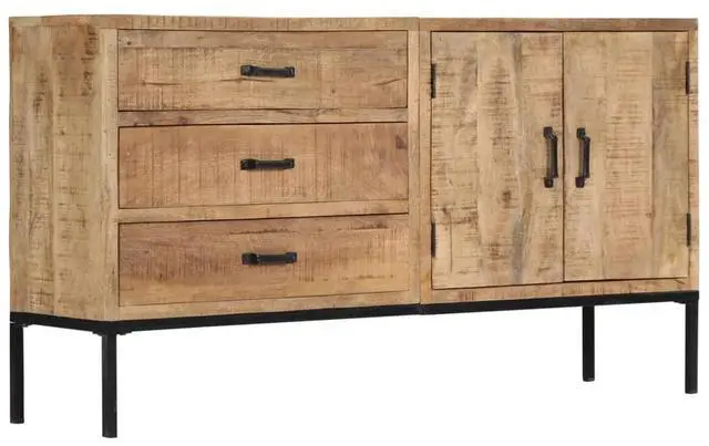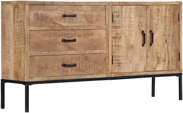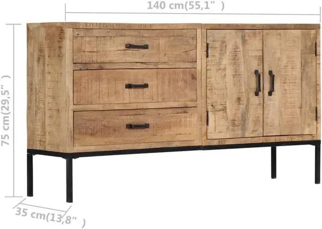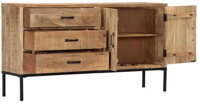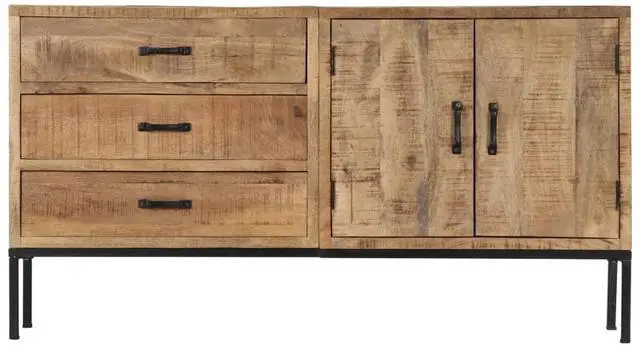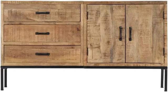 The cabinet is made of solid mango wood, a hardwood with dense grains. Rough mango wood not only has the strength to bear the weight, but also stands the wear and tear of time. Accordingly, this beautifully-designed dressoir is exceedingly stable, durable and aesthetically-appealing. The exquisite wood grains make every piece of furniture distinctive and slightly different from each other. This dressoir features 3 drawers and 2 cabinets with 2 doors, providing ample space for storing your shoes, books, as well as various other items.