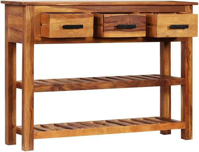 The side cabinet is made of solid acacia wood which is stable and beautiful, and the craftsmanship adds to its spectacular retro style. Every step of the construction process is carried out with the greatest care, be it polishing, painting and lacquering. Additionally, the three drawers and two shelves provide ample storage space for organizing your various essentials.
