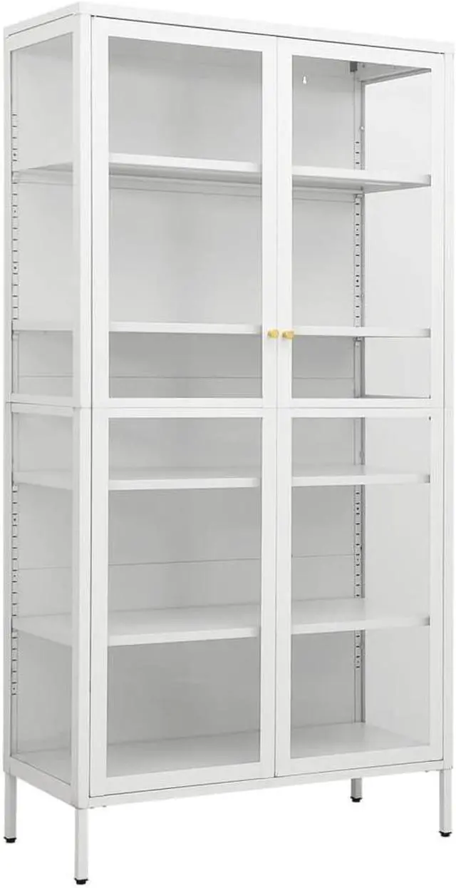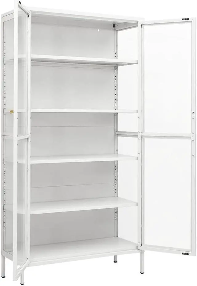 This display cabinet with practical design is a real eye-catcher for your home decor. Made of steel and tempered glass, the construction of this storage cabinet is sturdy and durable, ensuring years of service. The side cabinet has 4 adjustable shelves, providing ample space for storing books, magazines and other personal essentials. Additionally, it is also easy to clean with a damp cloth.