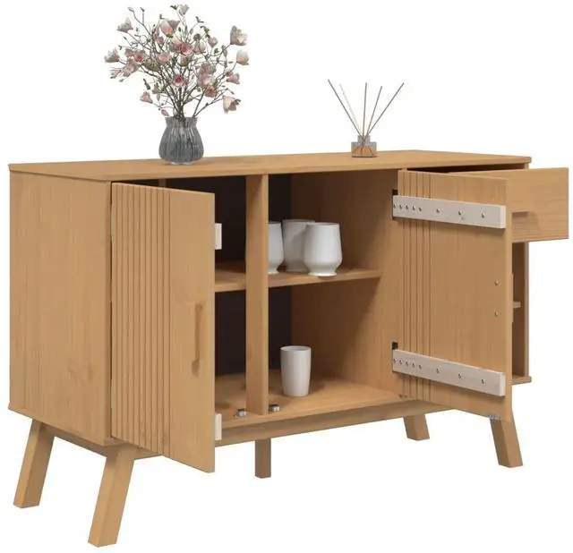 This Scandinavian Solid Pine Sideboard fits right in with any home decor, featuring sleek lines and a classic look that pairs well with both modern and traditional styles. With a smart brown finish that highlights the natural wood grain, this sideboard is a stylish accent in your living room or hallway while also providing practical storage.