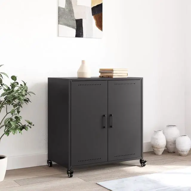 This modern sideboard cabinet is the perfect blend of practicality and style, making it a fab addition to your living room. With a sleek black finish and solid steel build, it offers smart storage while fitting in beautifully with your home decor.