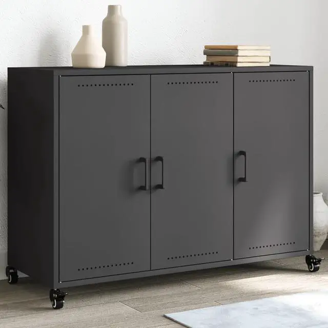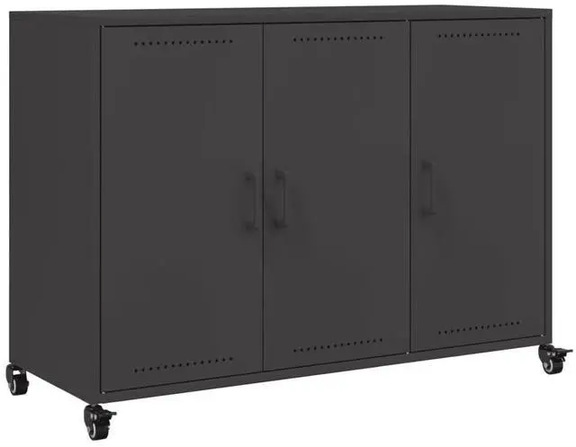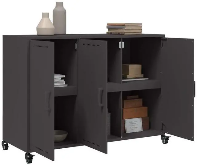 This modern black steel sideboard cabinet is all about function and style, fitting in beautifully with contemporary spaces. With its sleek design and solid build, it's perfect for stashing everything from dinnerware to books, boosting both organization and looks in your living room.
