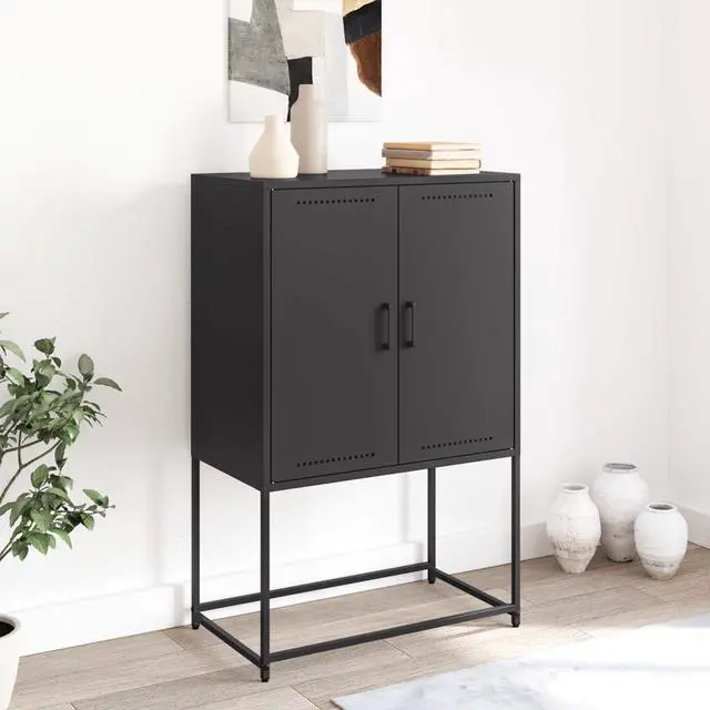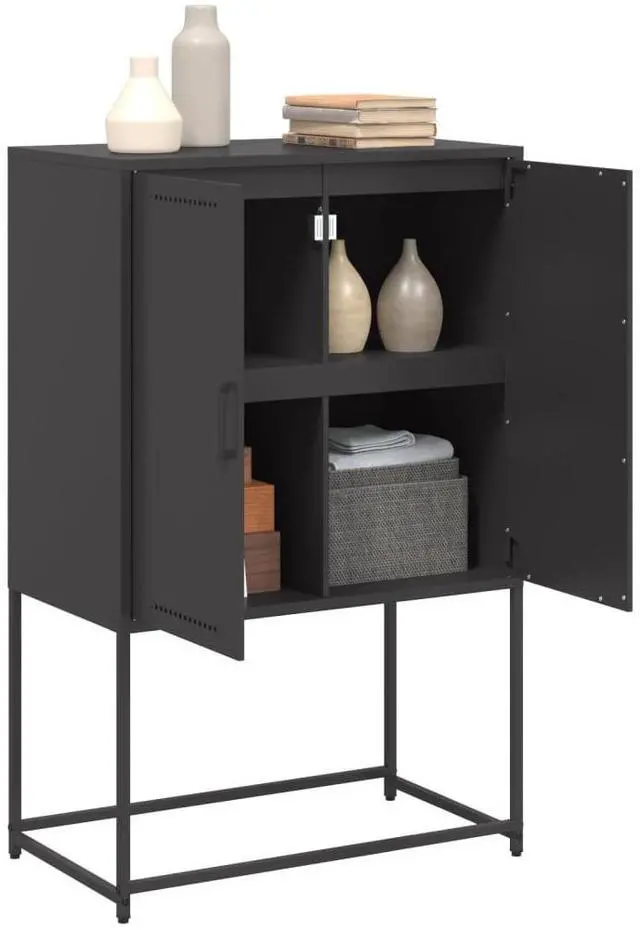 This Industrial Style Black Highboard Cabinet is not just practical but also a bit of a showstopper. Whether it's in your living room or as a standout piece in the bedroom, its contemporary black look and solid steel frame give it a classy yet rugged feel, blending practicality with a stylish edge that fits right in with any modern decor.