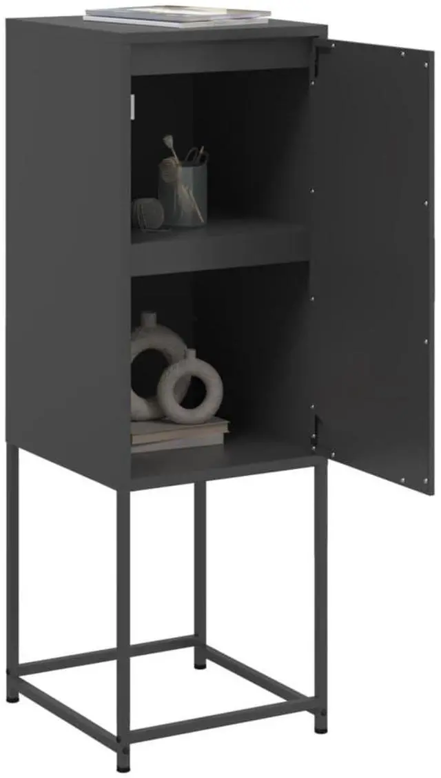 This industrial style highboard, finished in black, is a modern twist on storage. With its sleek surfaces and tough steel design, it not only offers tons of space but also boosts the overall look of your living room or bedroom.