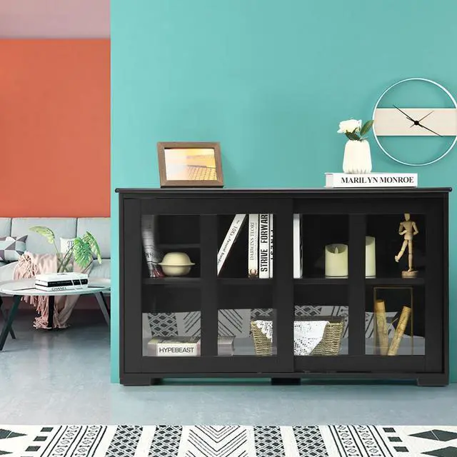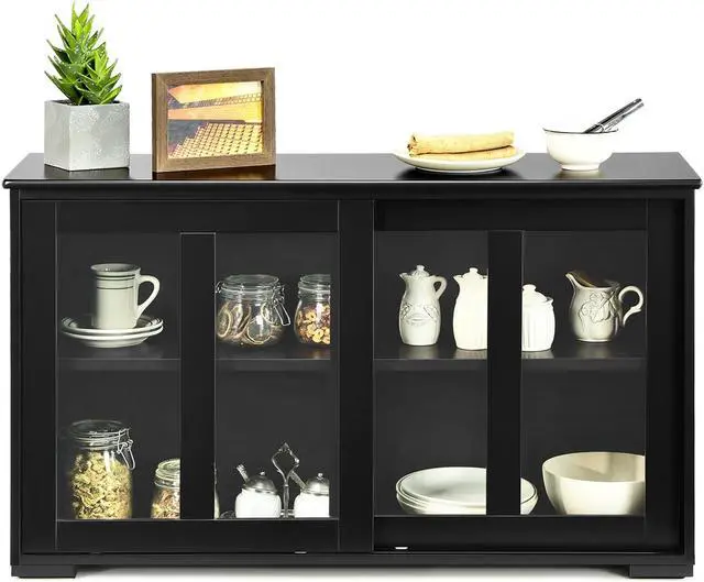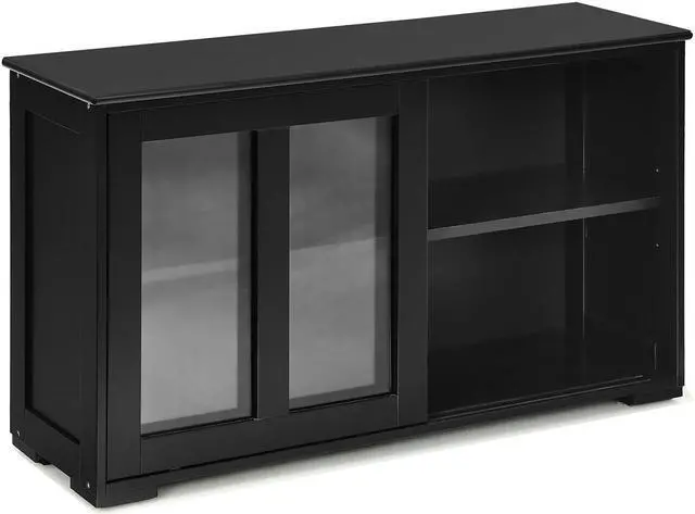 Large Storage Space: A large sliding door offer great convenience for you to store suitable tableware inside. Two shelves inside enlarges your storage demands.Spacious top for displaying or storage your kitchen tools.