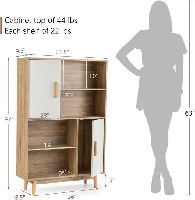 Easy to Assemble and Dimension: To help you assemble successfully, this storage cabinet comes with detailed instructions and clearly labeled parts. After installed, this floor cabinet for bedroom or kitchen measures 31.5" x 9.5" x 47" (L x W x H), each shelf bearing 22 lbs, cabinet top 44 lbs.