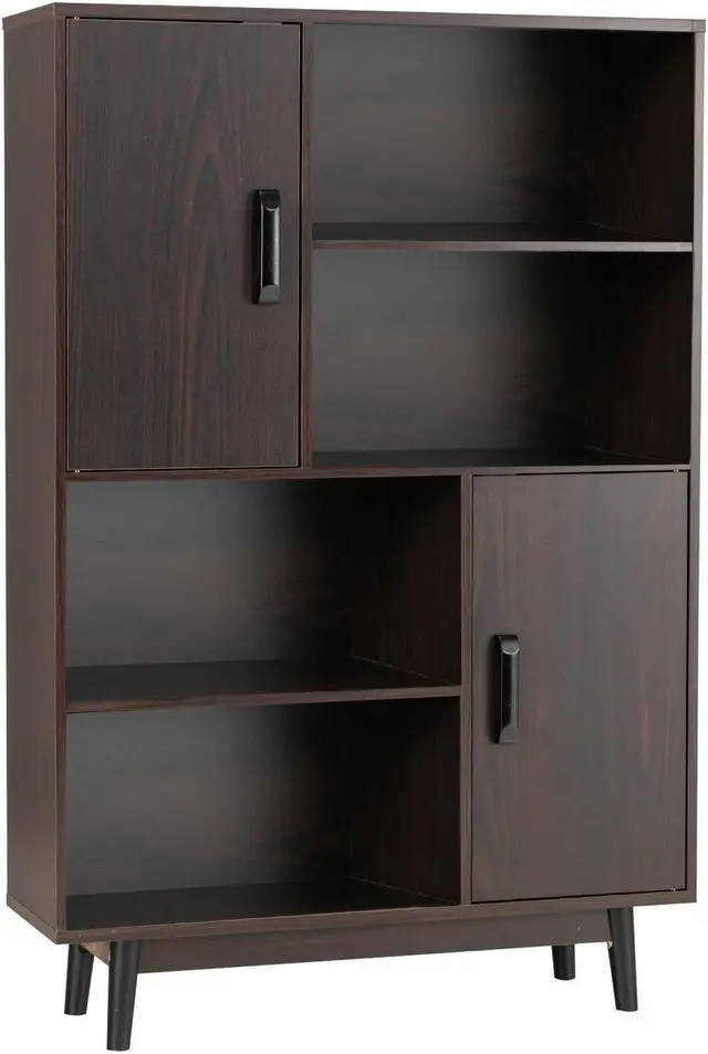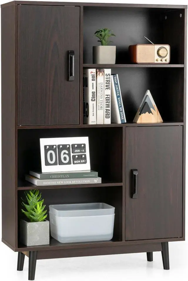 Endless Storage Options: This 4-tier accent storage cabinet features 2 storage doors for hiding the mess and 4 open shelves for displaying your book collection and decorations. A medium height allows you to place photos, plants, and other daily essential items on the cabinet top.
