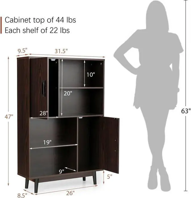 Multifunctional Furniture: In addition to collecting your daily essentials, this display storage cabinet also serves as a bookshelf, a kitchen buffet cabinet, tall cupboard, sideboard, and more. Several of these storage cabinets can form a line of room dividers to upgrade and improve the room configuration.