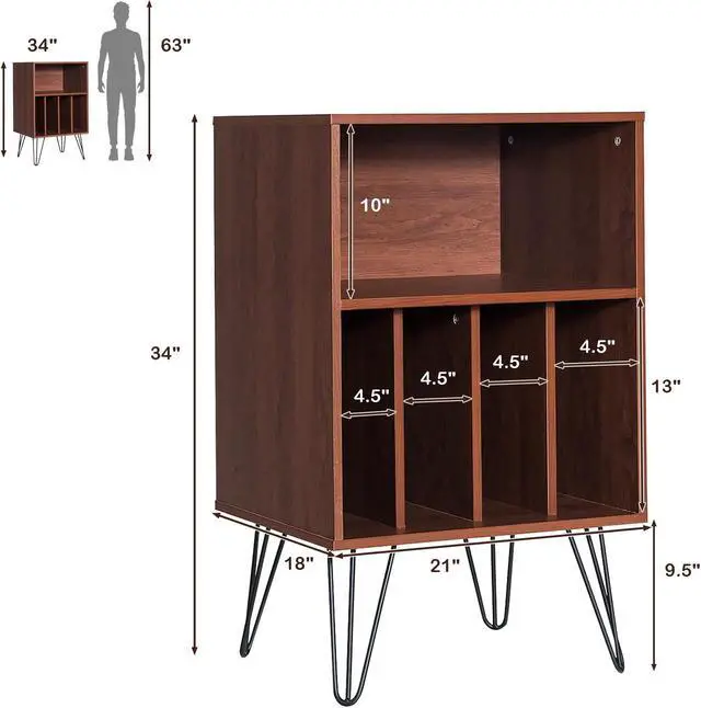 Compact Size and Anti-tipping Design: Measuring 21" (L) x 18" (W) x 34" (H), the turntable stand is smartly made to be placed at any small spaces like the corner of living room or perfectly fit any large space. Compared to other regular storage cabinet, this record player stand is equipped with anti-tipping device to attached to the wall to prevent wobbling.