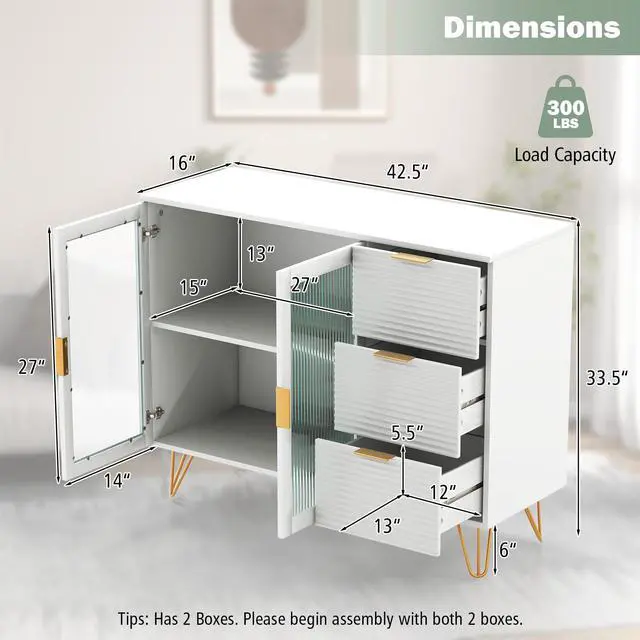 Large Storage Capacity: Featuring 3 pull-out drawers and a 2-tier storage cabinet, this dining room cupboard provides large storage space to keep daily essentials well organized. It can store kitchen appliances, utensils, tableware, spice jars, wine, etc. Additionally, the spacious countertop is an ideal place to put ornaments or coffee machine.