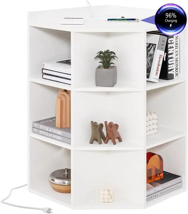 Convenient Charging Station: This corner storage cabinet has 4 AC outlets and 2 USB ports for you to charge your phones, laptops and desk lamps easily. The 6.5 ft power cord and cable management hole also bring much convenience.