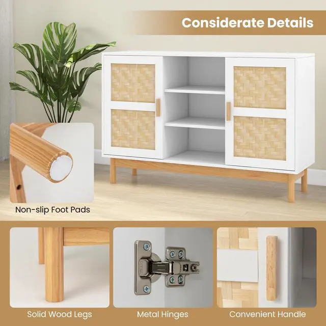 Full of Natural Beauty: This exquisite piece stands out for its craftsmanship and design. Unique bamboo woven patterns add a natural and elegant element to the sideboard, creating warm and inviting atmosphere.