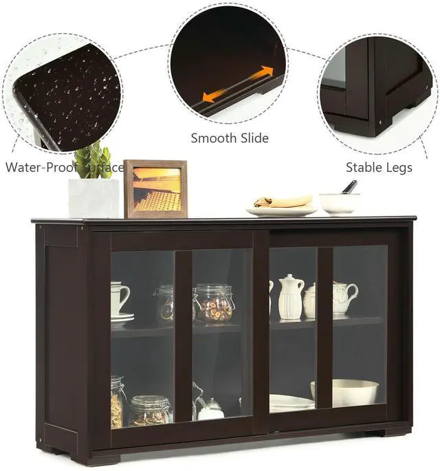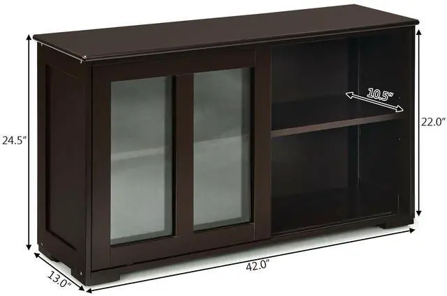 Large Storage Space: A large sliding door offer great convenience for you to store suitable tableware inside. Two shelves inside enlarges your storage demands.Spacious top for displaying or storage your kitchen tools.