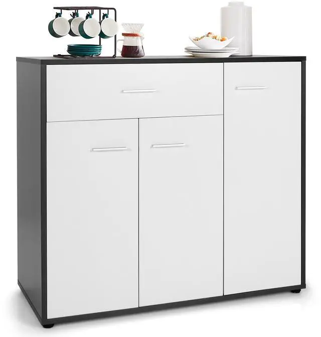 Sufficient Storage: Featuring a 3-door design, the buffet sideboard provides more storage areas, including a wide cabinet top, a drawer and 2 compartments, to accommodate kitchen necessities. Also, the right compartment comes with a 3-position adjustable shelf for inner customized space.