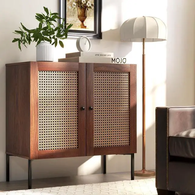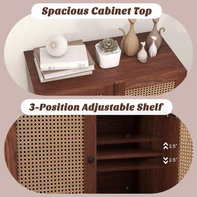 Classic Rattan Embellishment: Symmetrical double doors with natural rattan elements combine beauty and practicality, making this sideboard an aesthetic-pleasing piece in your home. More, its clean lines and natural tones perfectly blend with interior decoration and add charm to your living surroundings.