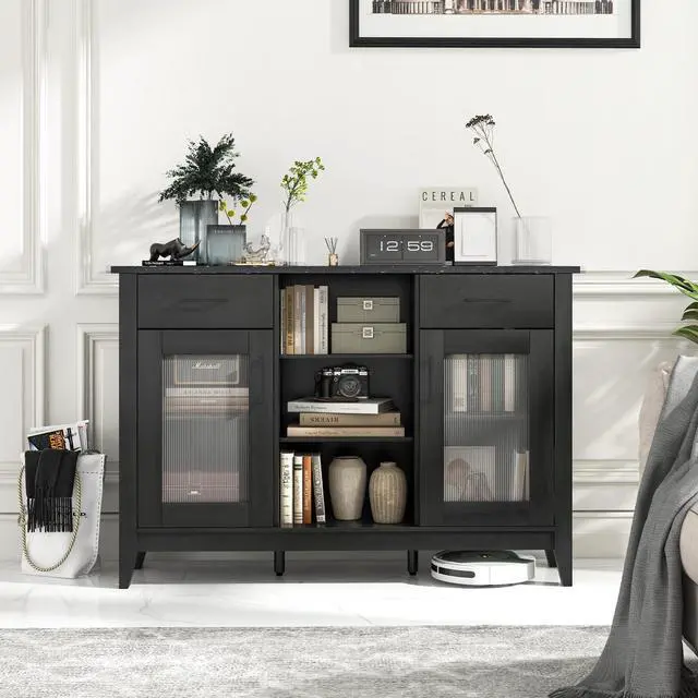 Secure Construction: The buffet sideboard is equipped with anti-tipping devices, so that it stays stable in bustling homes. For extra stability, it also features two middle support legs with adjustable footpads, enhancing its balance and ensuring it remains securely in place.