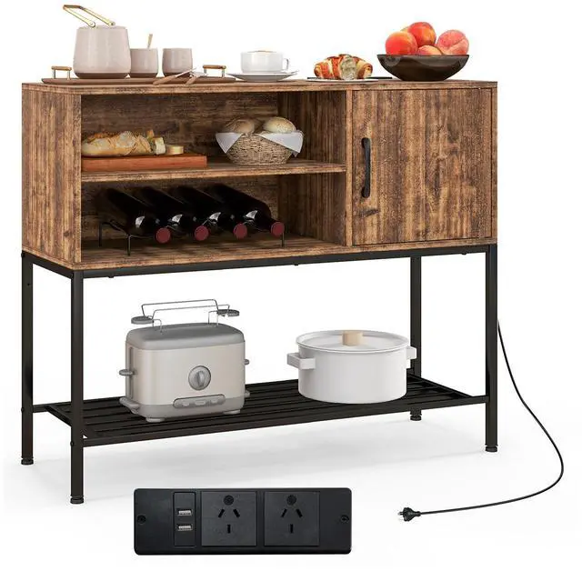Safe and Fast Charging: The buffet sideboard is built with 2 AC outlets (125V/12A) and 2 USB ports (5V/Max. 2.1A) for easy charging. Moreover, the 6.5 feet/2 meters power cord brings great convenience while the back cable management hole hides wires to avoid clutter. Certified by ETL and UL, this buffet cabinet is more reliable.