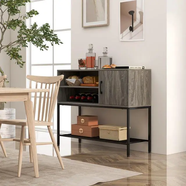 Easy to Assemble: Coming with clear instruction and complete accessories, the buffet storage cabinet is easy to assemble. Furthermore, you are able to open the door thanks to the convenient handle. And the magnetic door catch helps close the door firmly as needed.