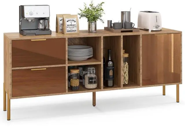 Large Storage Space: This sideboard comes with a spacious top, 4 open compartments, 2 deep drawers and a single door cabinet, providing roomy storage space for kitchen utensils, coffee maker, wine, snacks, decorations and more.