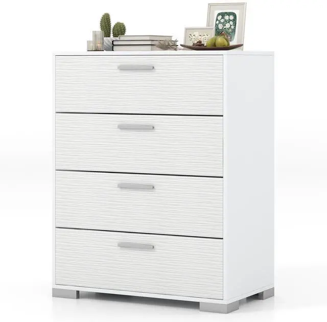 SlickBlue 4 Drawer Storage Cabinet with Metal Legs Handles with Anti-Toppling Devices-White