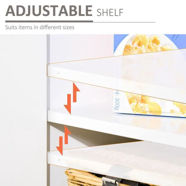 Quality Material: This storage buffet is made of MDF and steel legs for sturdiness and stability. An elevated metal base prevents moisture damage. This hutch cabinet features an anti-toppling design and can be fixed to the wall for safety.