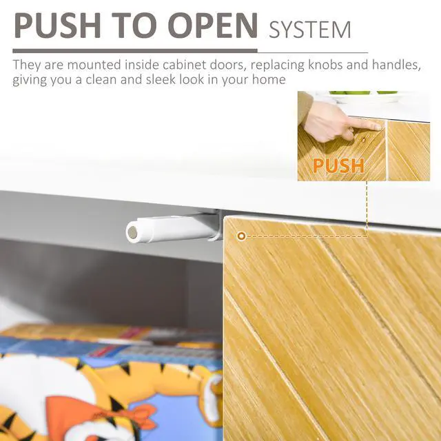 Push to Open System: The push devices on this sideboard with storage are mounted inside hutch cabinet doors, replacing knobs and handles to give you a clean and sleek look in your home.