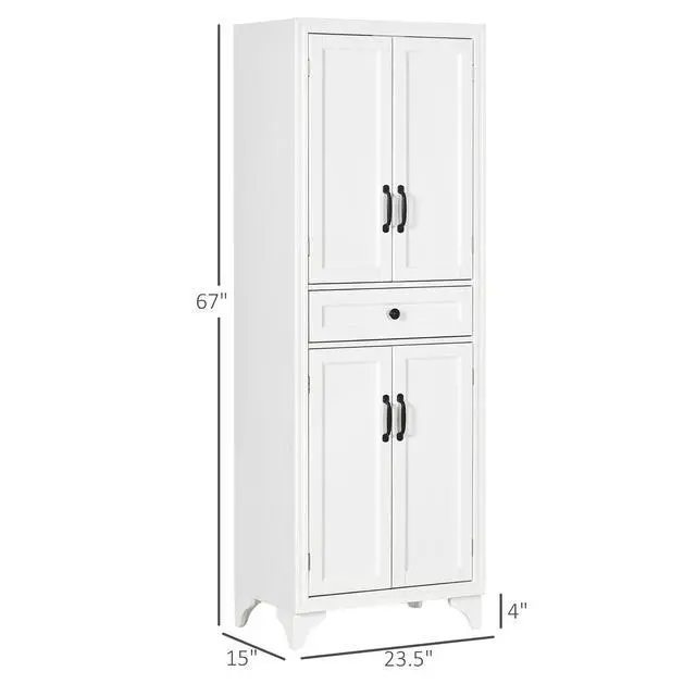 Upgrade Your Storage: The 4-tier shelving of this food pantry cabinet gives you plenty of room for dishes, cookbooks, pots and pans, dry goods, or plastic containers, while the central drawer allows you to put away napkins, towels, and silverware. If you have taller items, two 3-level adjustable shelves can be customized to fit pitchers, pasta containers, and blenders.