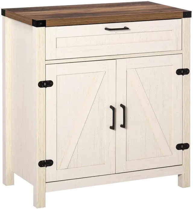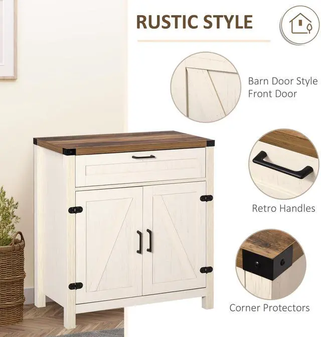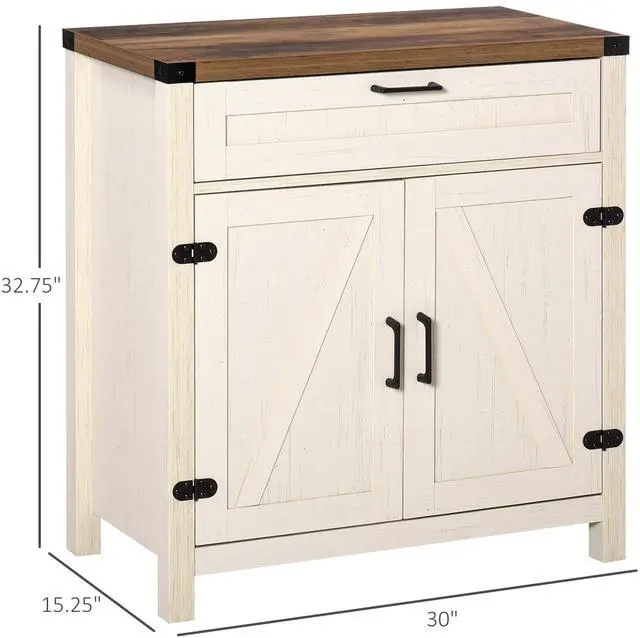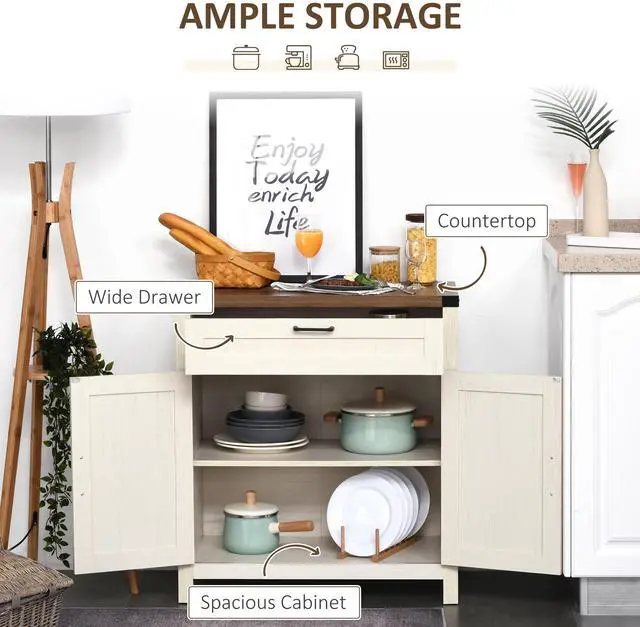 Sufficient Storage Space: This storage cabinet features a pull-out drawer, and a double door cabinet, providing compact storage for small accessories, utensils, and plates. An adjustable shelf is behind the door for your storage convenience.
