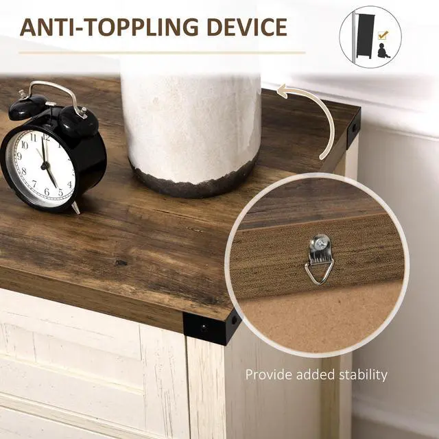 Barn Door Style: This modern farmhouse-inspired console table makes a distinct statement in any setting. Barn door style utility cabinet front door with retro hardware evokes a rustic charm in your home.