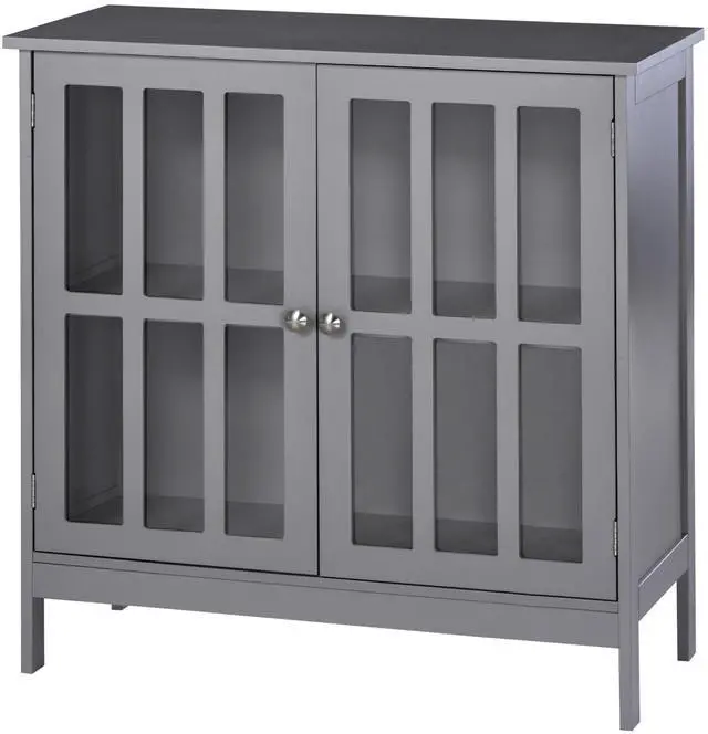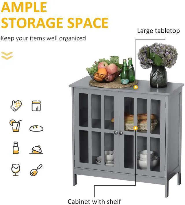 Ample Storage Space: With a two-tier shelf, this sideboard storage cabinet gives you plenty of storage. The transparent acrylic-paneled doors make it easy for you to find items, while the handles allow for easy opening and closing.