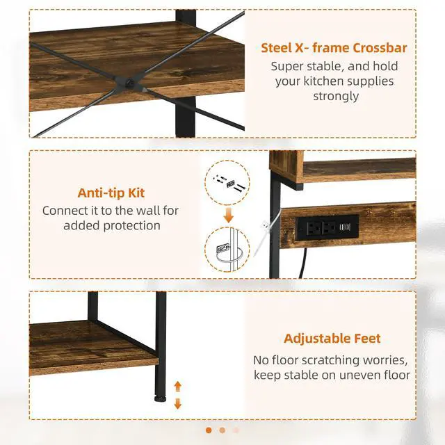 Convenient Power Outlet: With two power outlets and two USB chargers supporting up to 1500 watts, our kitchen rack keeps your air fryer, microwave oven, and other kitchen appliances ready. Just plug in, and you're all set for a cooking adventure in a clutter-free workspace.