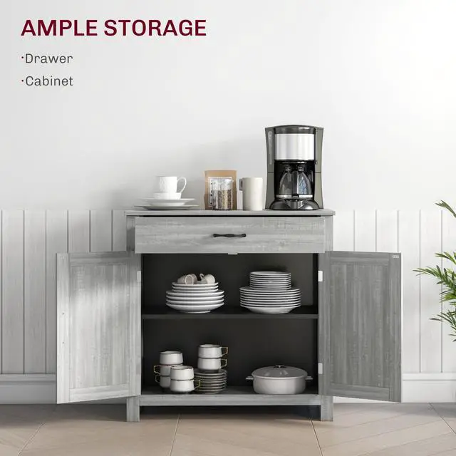Safe and Stable: Anti-tipping design of the kitchen buffet ensures safety in daily use. The combination of particleboard and MDF frame offers a reliable solution for your storage needs, while easy to wipe clean.