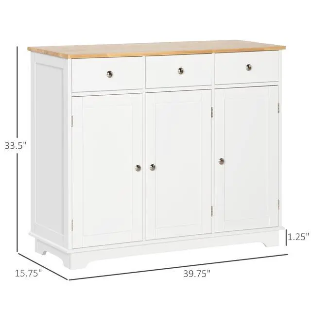 Roomy Storage: This buffet cabinet utilizes 3 large drawers for utensils or napkins and 2-tiers offering storage space for plates, plastic containers, pots, or pans. Keep organized behind doors so your items stay safe and dust-free. The shelf inside is 3-level adjustable to meet various storage needs.