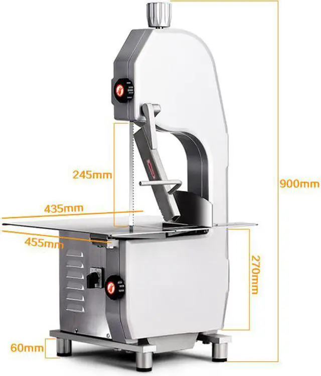 The Electric Meat Bone Saw machine could offer fine cutting accuracy and ease of use. The body is cast aluminum with large stainless steel tables. These saws are ideal for small to medium applications. Designed especially for for small and medium size restaurants, butcher shops, this upright design takes up less room. Stainless steel sliding table and fence components conveniently disassemble for easy clean-up.