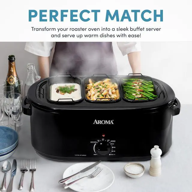 Turn your Aroma roaster oven into a buffet station. This 3-insert tray lets you cook and serve multiple dishes at once—perfect for holidays, potlucks, and easy entertaining.