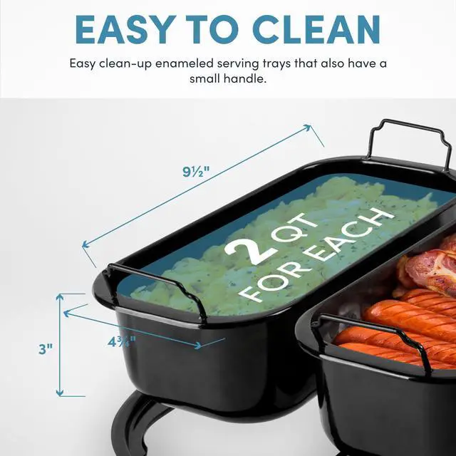 Each insert holds up to 2 quarts, ideal for mains, sides, sauces, or dips. Cook, serve, and keep food warm—all in one tidy setup.