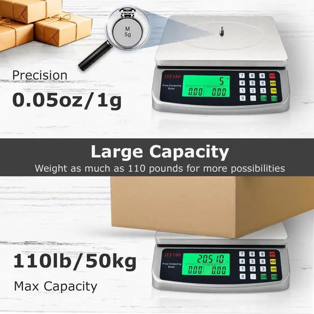This digital food scale has endless uses for personal or commercial environments - great for homes, kitchens, offices, and more. With a capacity of 110lb (50kg), you can weigh a variety of items with ease. You will be surprised at all the uses you will have for this product.